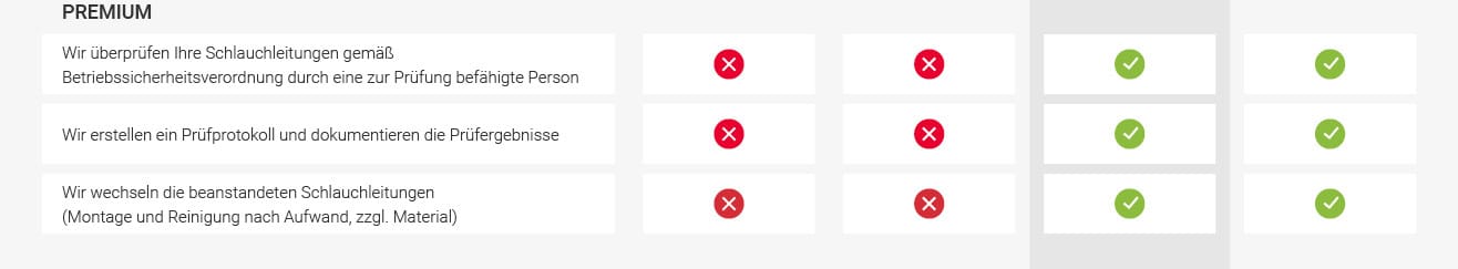 The Pro service package contains all the services in the Basic, Plus and Premium service packages. In addition, we make ourselves available to advise you on the risk analysis and the preparation of the legally prescribed risk assessment for every individual hose line. If necessary, our experts can also advise you on the inspection of components such as pressure accumulators. A professional daily oil analysis rounds off the range of services in the Pro package.