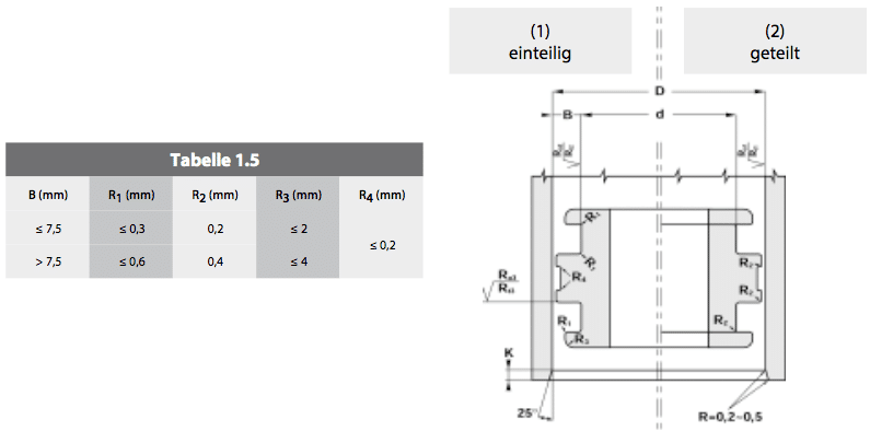 Scharfe Kanten sind zu vermeiden. In Tabelle 1.5 werden die einzuhaltenden Radien angegeben.